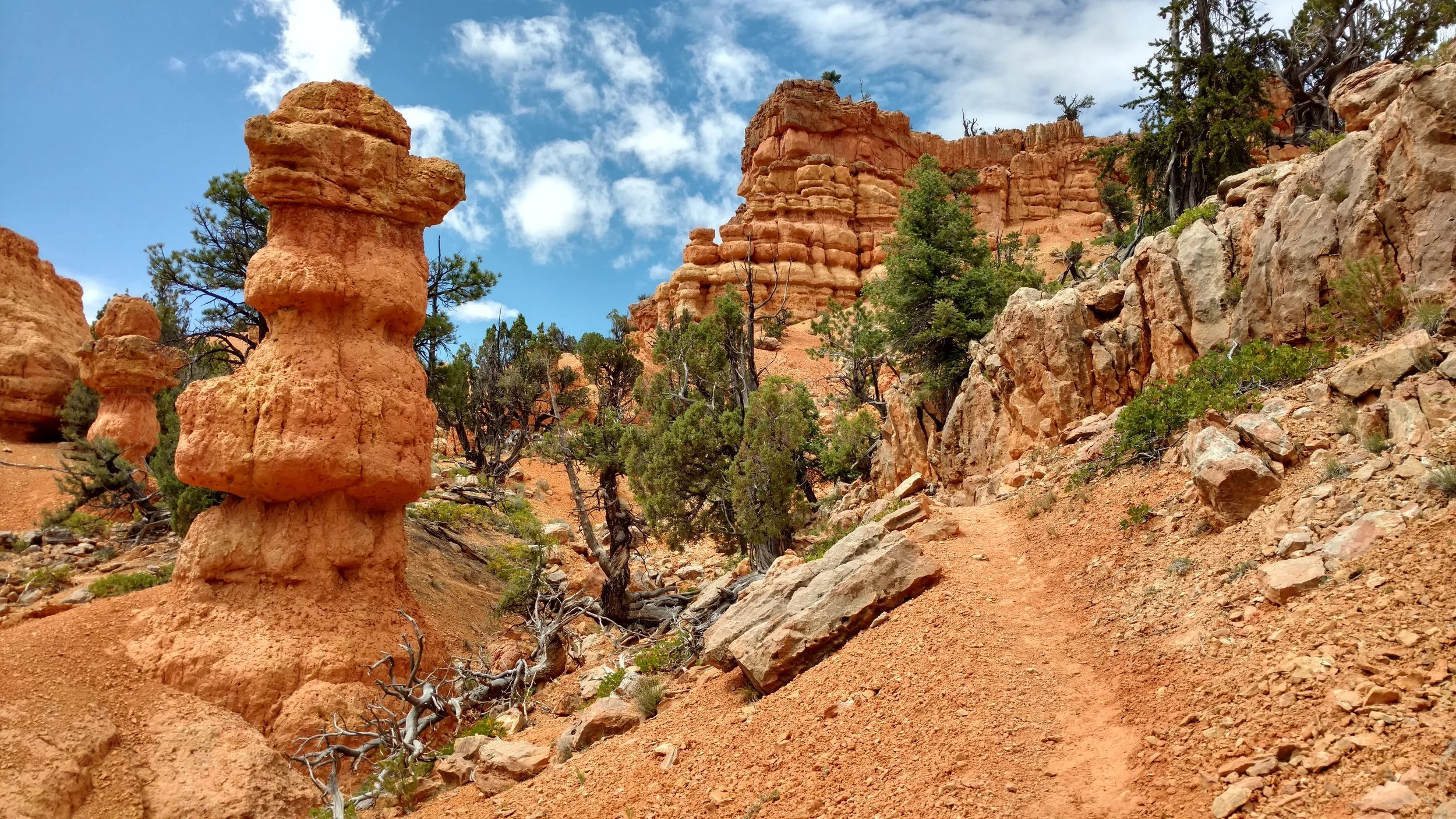 The set up is stunning, and I take a number of pictures hoping to capture in better detail the intricate nature of these conjoined hoodoos. I fail. They are simply too close to the trail, and any distance removes the eye's ability to pick out the details. This is simply one of those "you have to see it" type of instances.