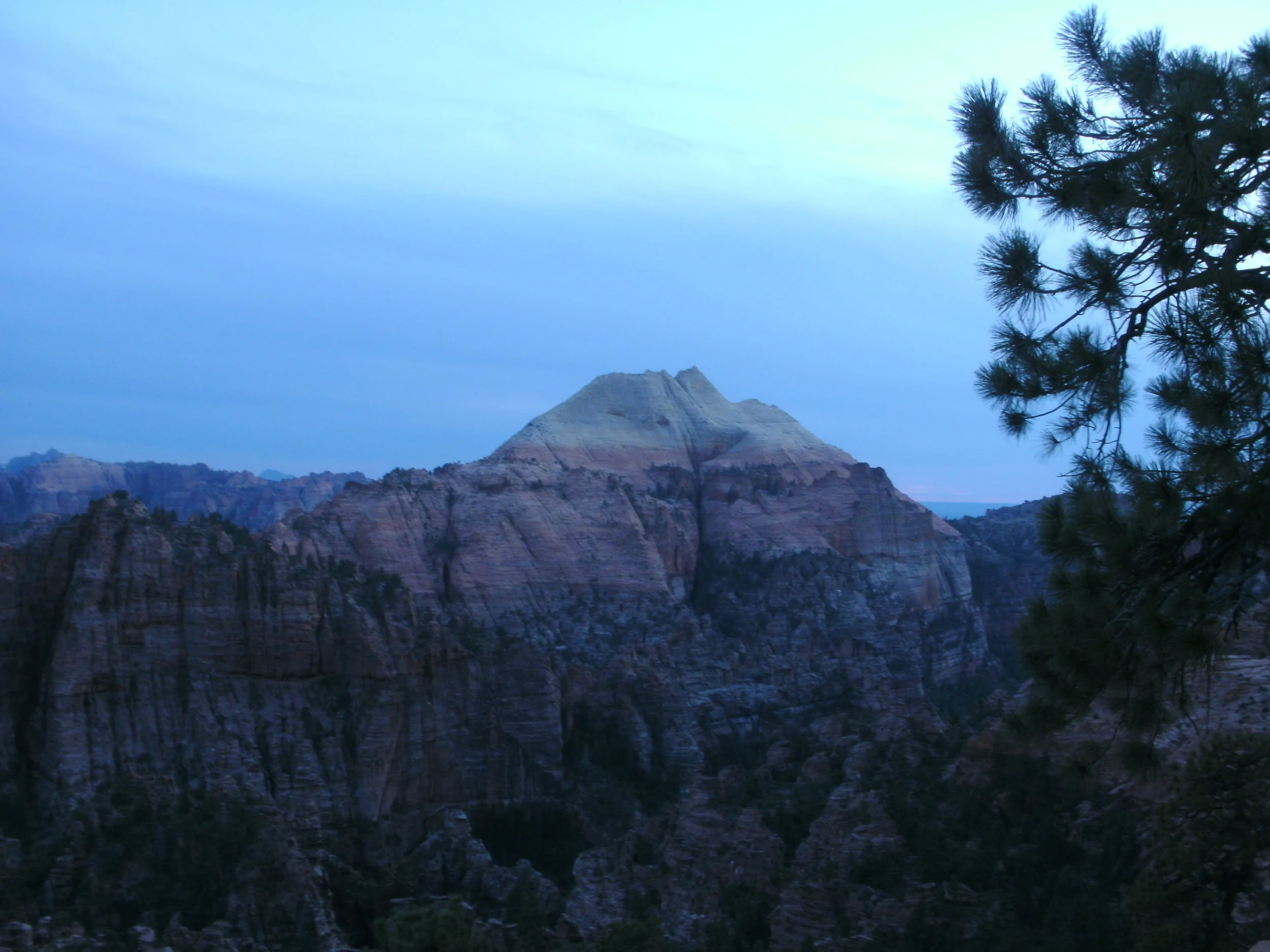 I arrived at the Wildcat canyon trailhead at about 6:45 am. Still dark, but just enough growing light in the eastern sky that I didn't worry about using a headlamp to begin my hike. This is my final long hike of the season. I had hoped to summit the South Guardian Angel last week but was recovering from a pulled muscle. Feeling good, I began checking the weather to make sure it would cooperate, and a long number of daylight hours. September and October are great months to hike Zion. Cooler temperatures and days still long enough to reach some out of the way places. I was surprised to find I had lost so much daylight by waiting just a week. But the temperatures were expected to be 88 degrees. Perfect.